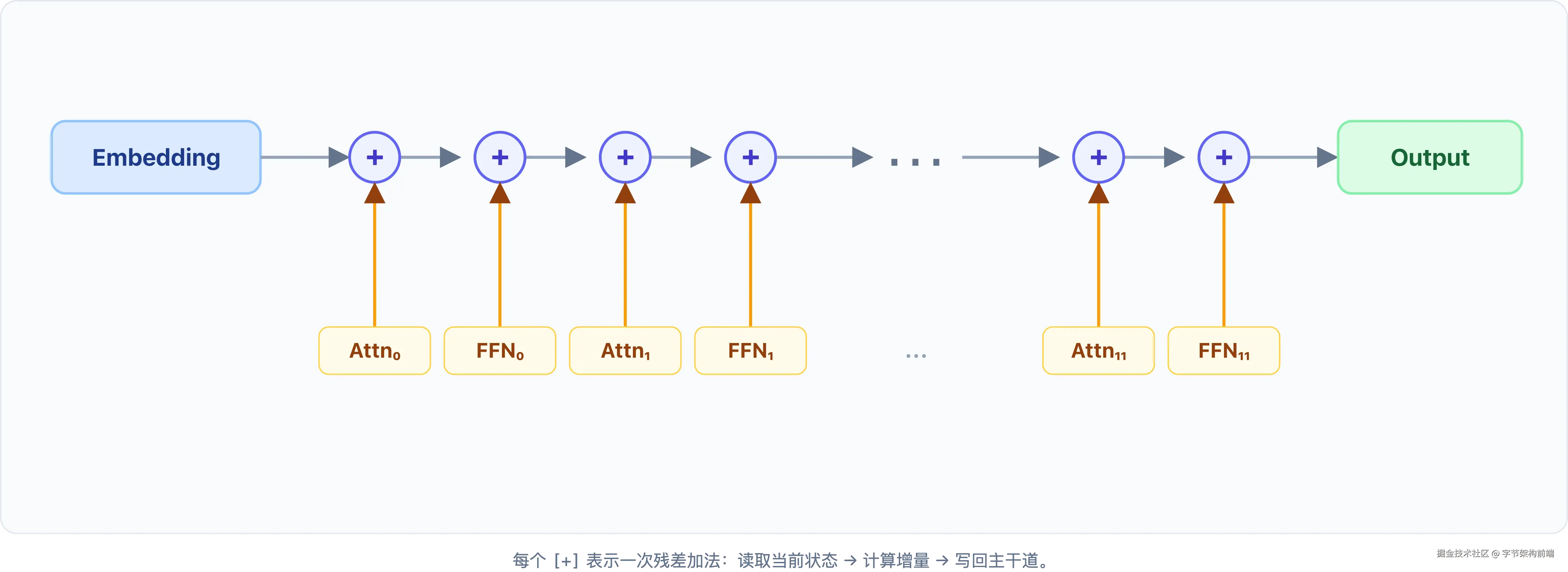 x = residual + ffn_out # 残差连接