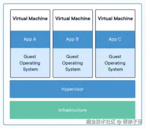 docker虽然给人的感觉是虚拟机,但是它运行的不是一个完整的操作系统,它运行的更像是一个个应用