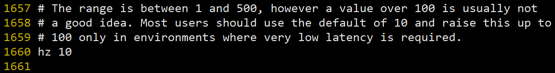 注意:hz调大将会提高Redis主动淘汰的频率,如果Redis存储中包含很多冷数据占用内存过大的话,可以考虑将这个值调大,但Redis作者建议这个值不要超过100。