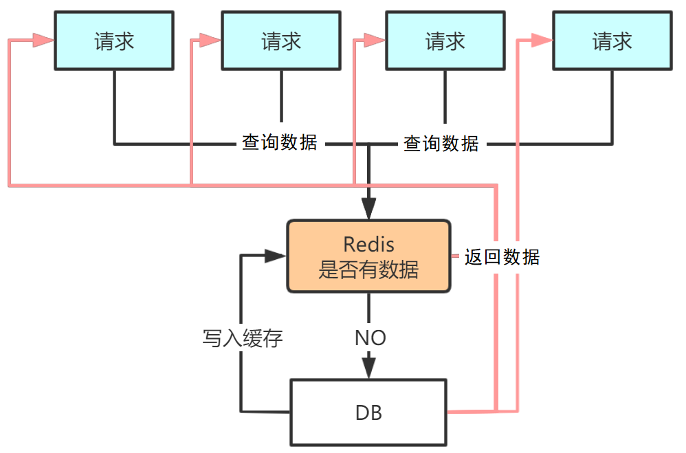程序在处理缓存时,一般是先从缓存查询,如果缓存没有这个key获取为null,则会从DB中查询,并设置到缓存中去。
