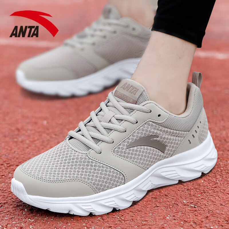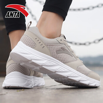 "title": "安踏男鞋休闲运动鞋网面软底夏透气板鞋跑步鞋子男士户外训练体育中考 -7二度灰/安踏白(网面) 42",