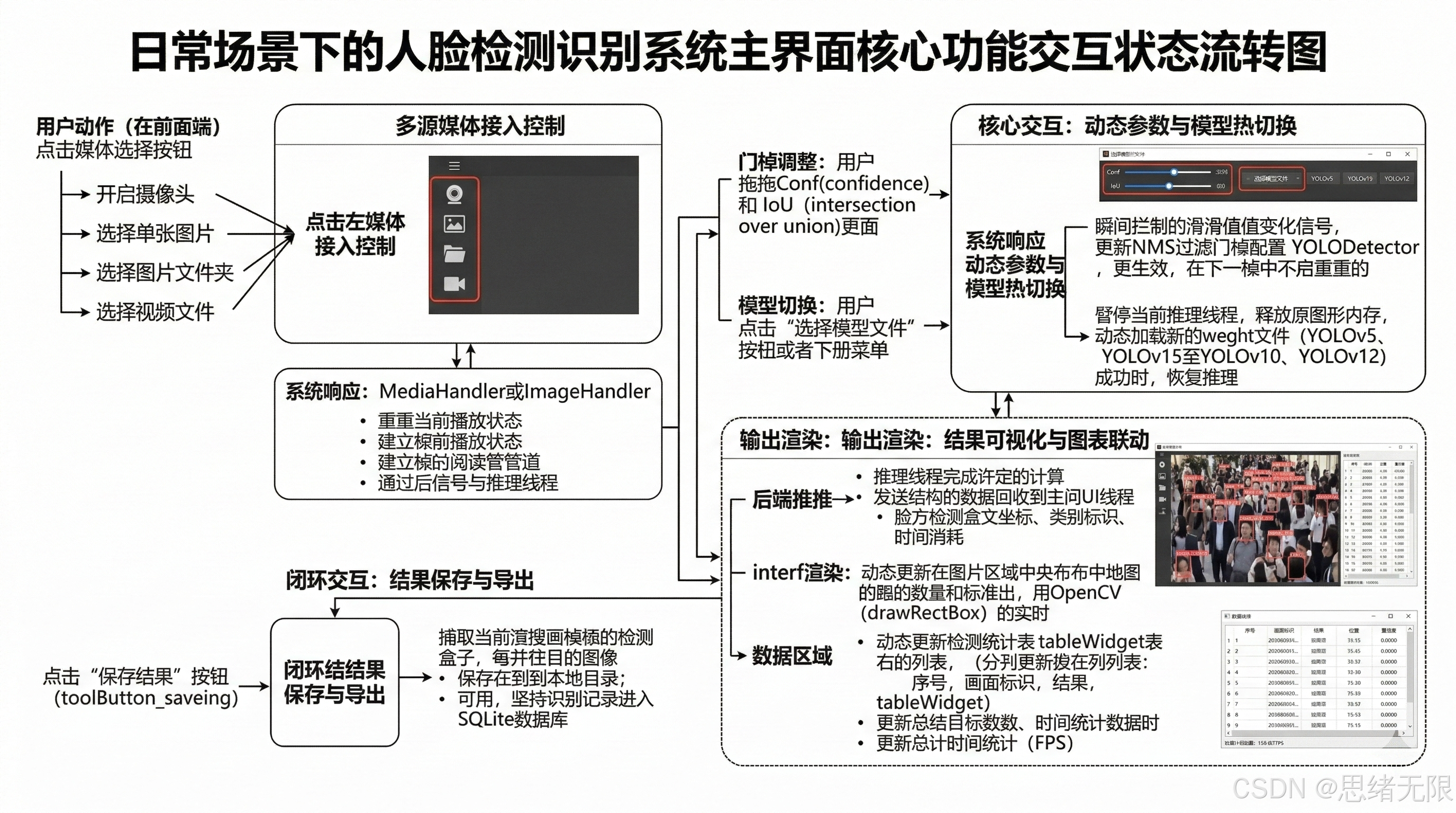 图注:系统从初始化到多源输入,完成预处理、推理与界面联动,并通过交互形成闭环。