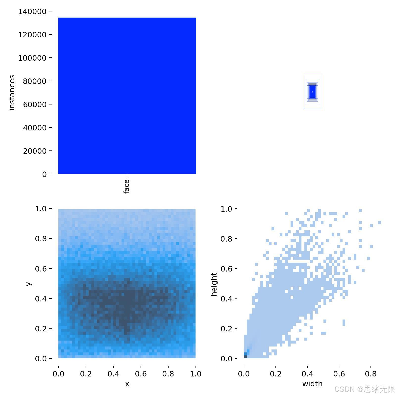 本项目面向"日常场景人脸检测"的真实部署约束构建数据集,图像内容覆盖室内外、复杂背景、多人密集、侧脸与遮挡、弱光与强光反差等典型困难因素;从训练批次可视化样例可以看到,同一画面中往往同时存在大尺度近景人脸与极小尺度远处人脸,这类尺度混杂是日常场景中漏检的主要诱因之一。数据集采用单类目标设定,仅包含 face(人脸) ,类别映射为 Chinese_name = {'face': '人脸'},从而把建模重点集中在"召回率与定位质量"的提升上。标签统计图显示数据集中人脸实例规模达到十万量级(约 1.3 × 10 5 1.3\times 10^5 1.3×105),中心点热力分布在图像中部区域更为密集;宽高分布呈明显长尾,小目标占比较高且宽高相关性显著,这意味着训练时需要更依赖多尺度特征与更稳健的增强策略来缓解小脸与遮挡带来的监督稀疏问题。
