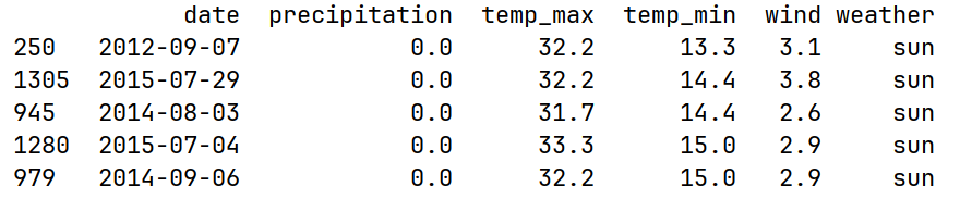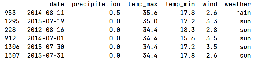 print(df.nlargest(30, "temp_max").nsmallest(5, "temp_min"))