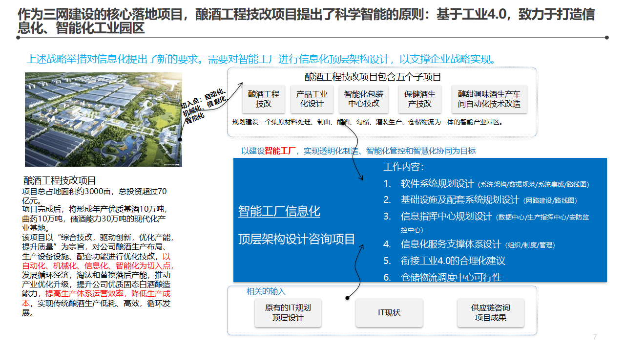 很多企业在做工厂技术改造,酿酒的、制药的、食品的,技改项目动辄数十亿投入,以"自动化、机械化、信息化、智能化"为切入点。但技改的钱花在设备上容易,花在软件和信息化体系上就容易乱。没有顶层架构,各部门各自为政,系统买了一堆,连不上,用不起来。