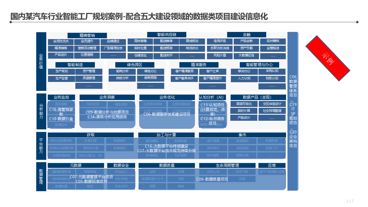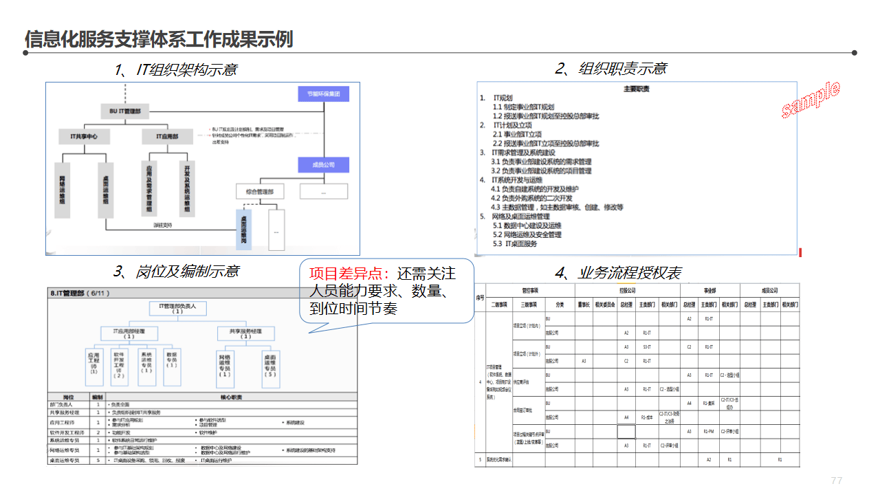 - IT团队的架构:项目管理、系统运维、业务分析、数据治理,每个角色都要有对应的人;