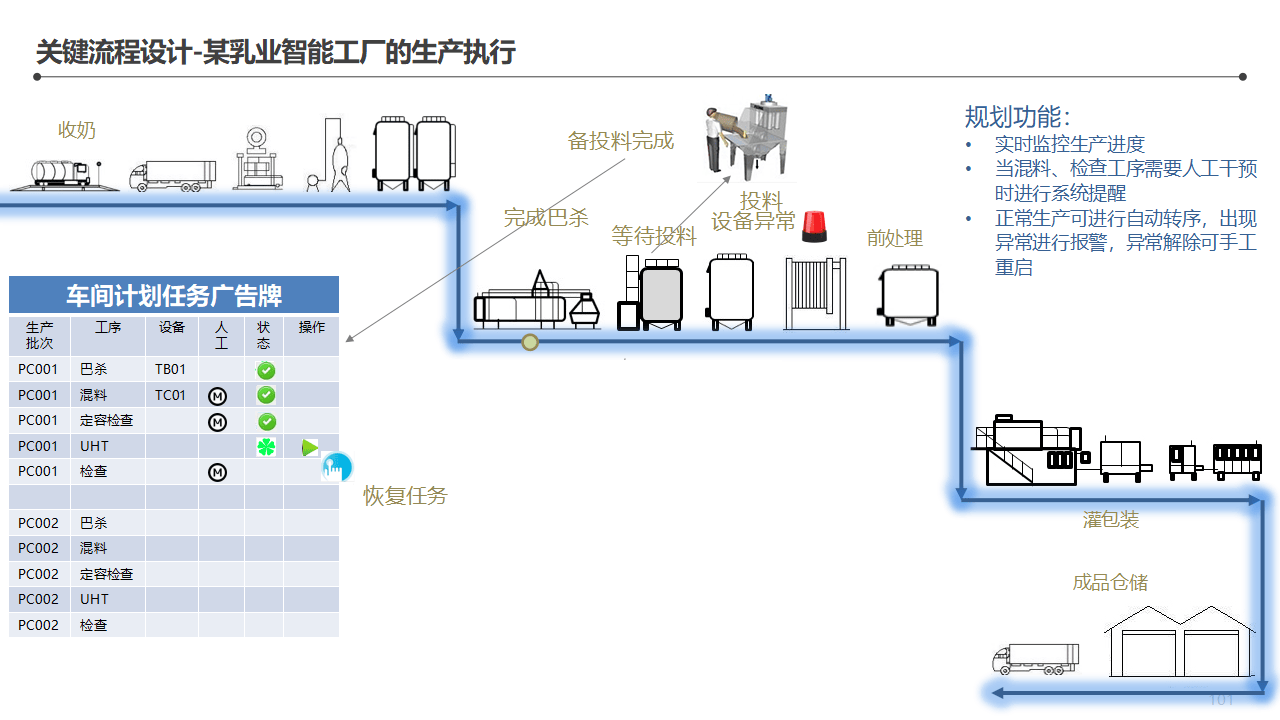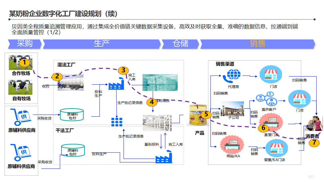 信息采集整合:原辅料信息(供应商、到厂时间、过磅数量、检测结果)、原辅料使用信息、半成品和成品信息、工艺过程和检验信息、储存运输信息。