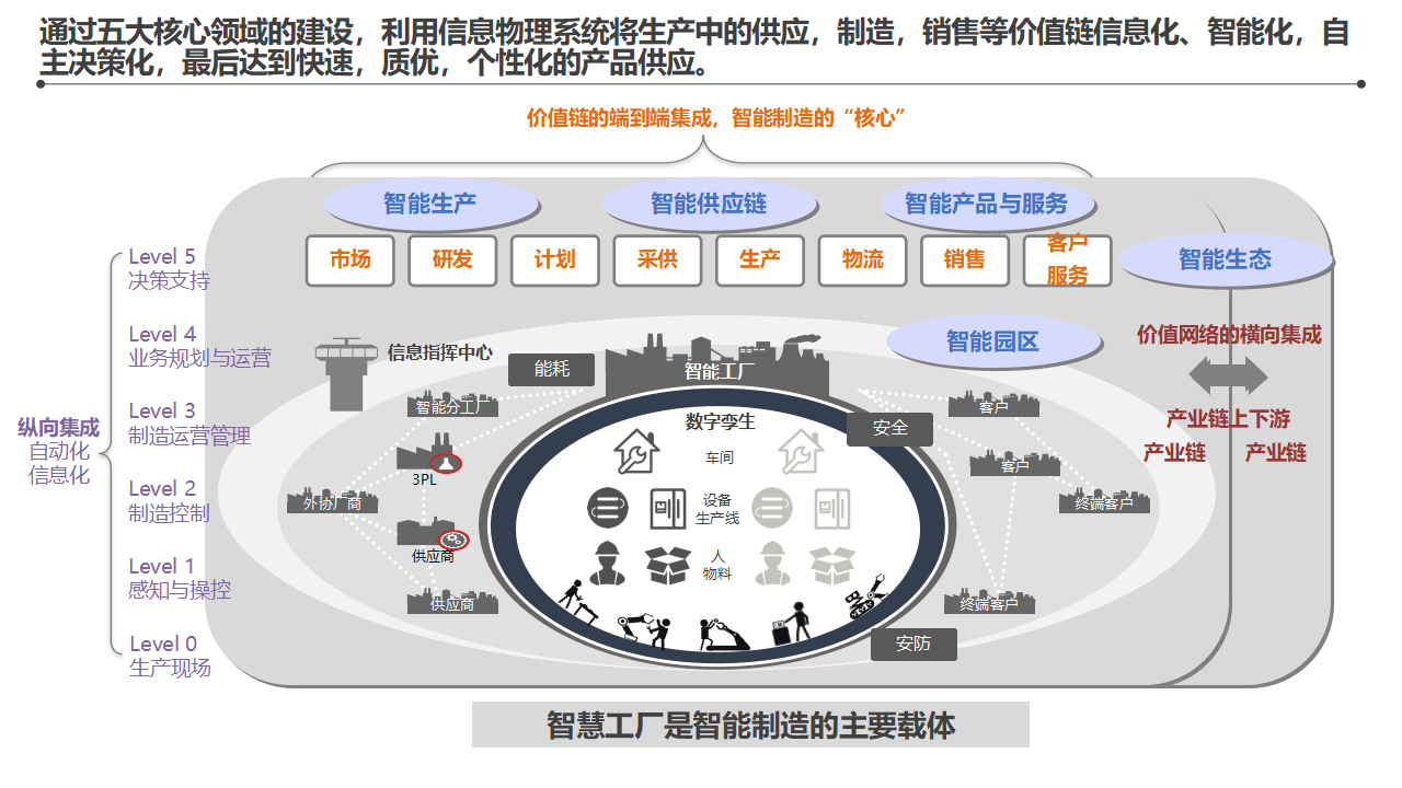 一个完整的智能工厂,需要在五个领域同步建设:
