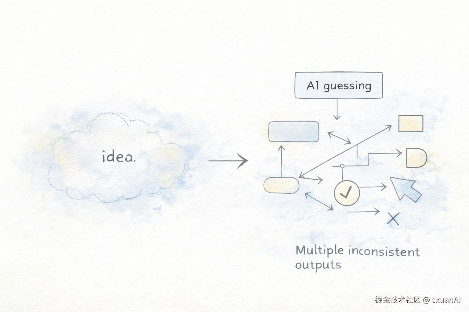 vibe coding 暴露的根本问题是:它还是在让你大概描述 而不是精确表达。你给 AI 的信息是模糊的,AI 的输出自然也是模糊的。