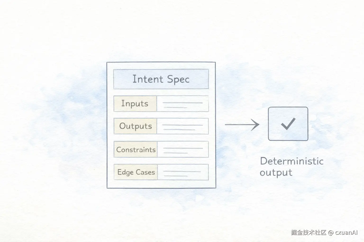 结构化意味着:每个字段的格式是定的,每个接口的输入输出是定的,边界情况是定的。AI 对着规格做,做完验收也对着规格验收。