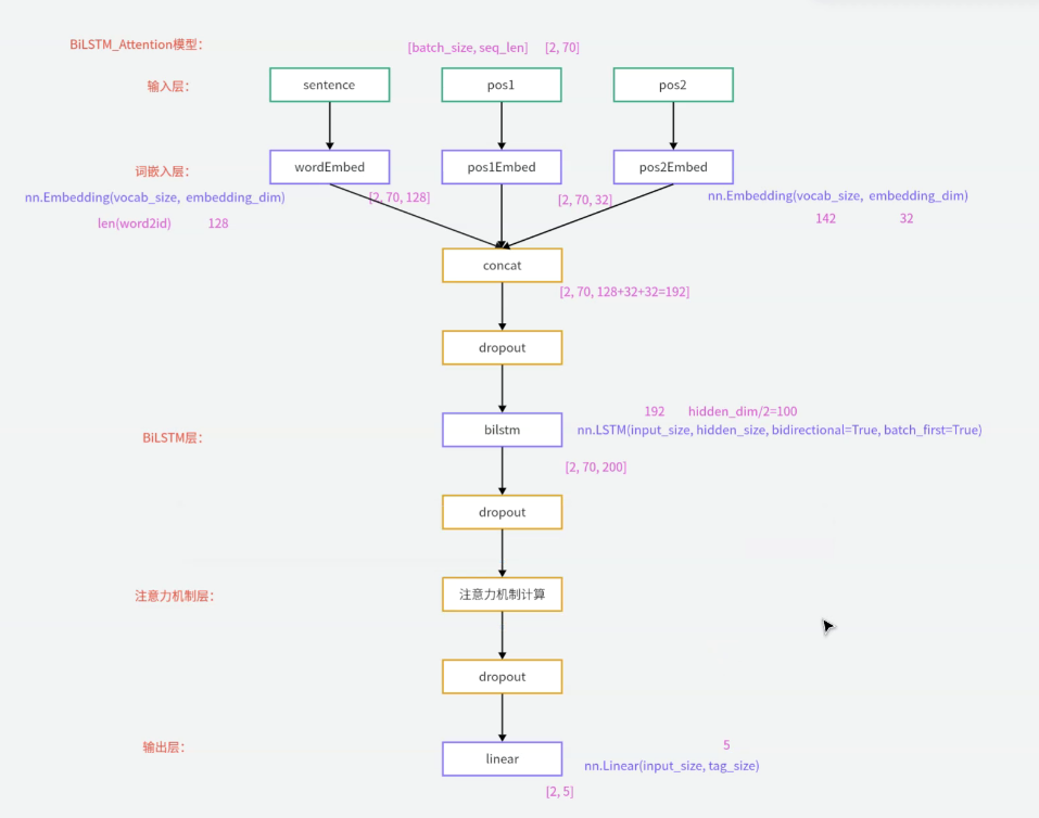 - 现在关系抽取的模型很多是基于BiLSTM+Attention实现的