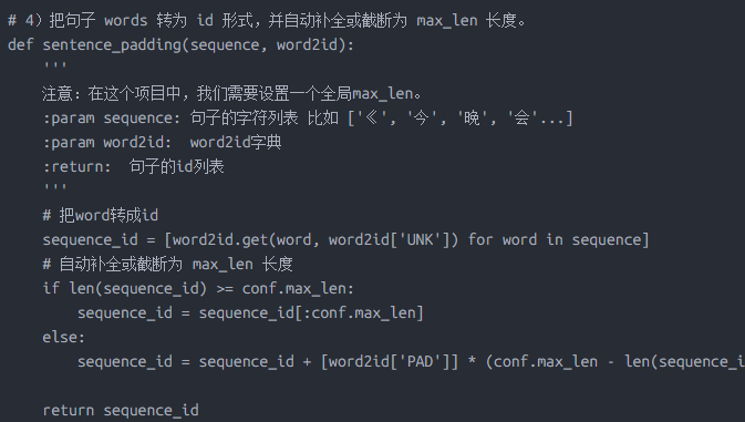sequence_ids = [sentence_padding(sequence, word2id) for sequence in sequences]