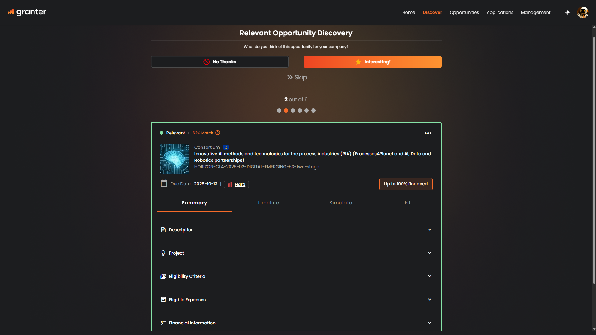 介绍:虽然大多数工具只帮助完成流程中的某一部分,但Granter是一个全方位集成的AI助手,能够自主运行您公司的整个资金申请生命周期。它全天候工作,寻找相关机会,撰写高质量申请,并轻松处理批准后的合规事务。您可以把它看作是一个专为您的公司、行业和地区定制的数字员工。
