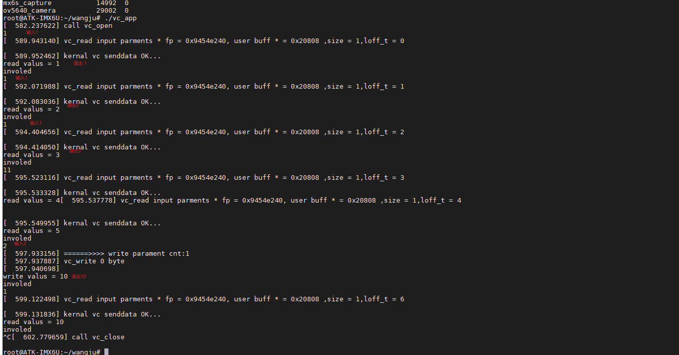printk(KERN_INFO"kernal vc senddata OK... \r\n");