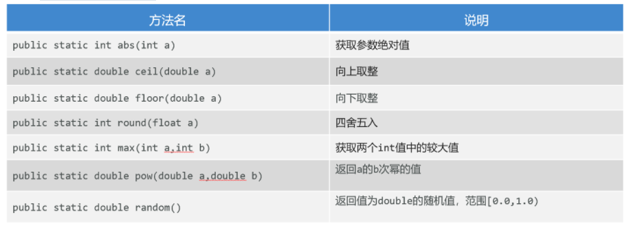 // 1、public static int abs(int a):取绝对值(拿到的结果一定是正数)