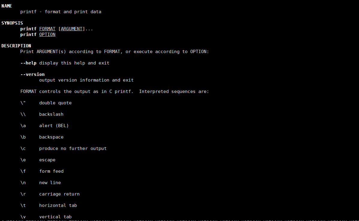 使用man指令查询printf指令(printf也是一个指令):man printf
