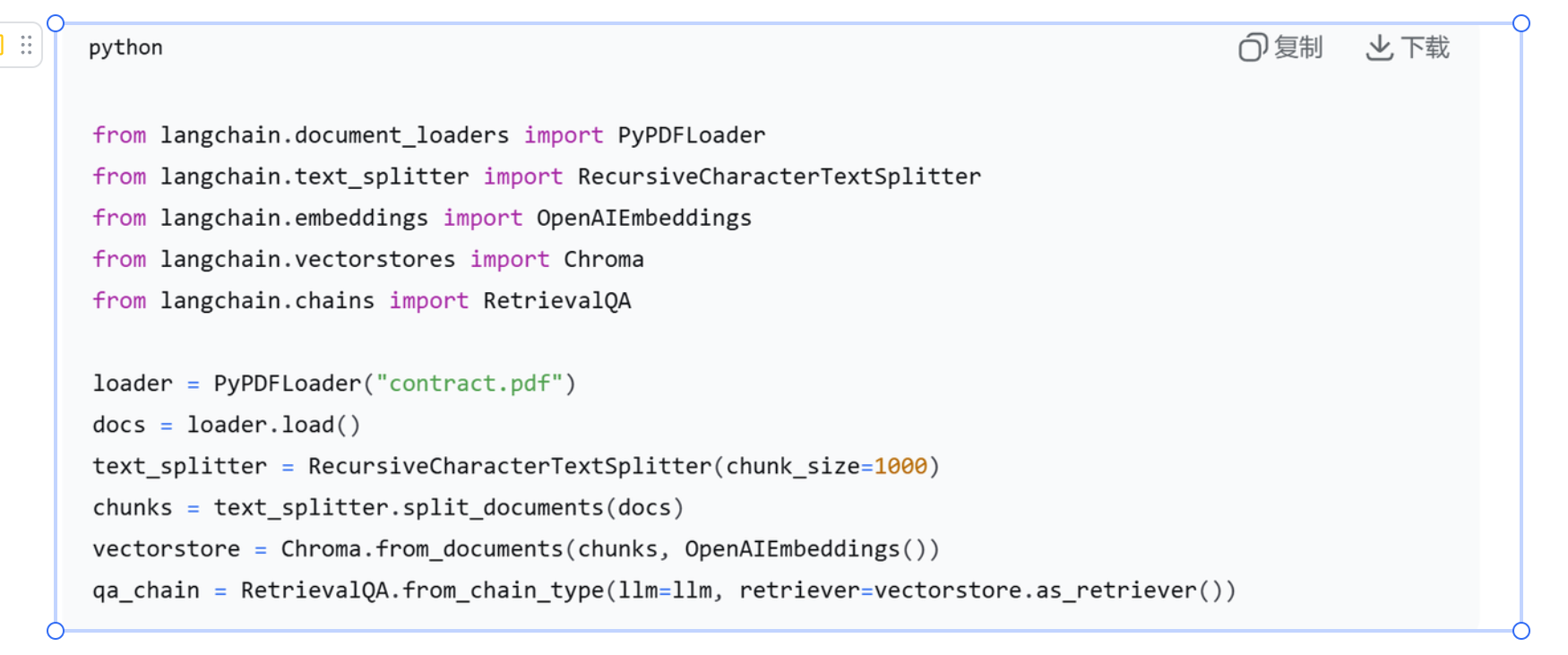 LangChain把这些都封装成了标准组件。你只需要几行代码: