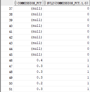 SELECT commission_pct,NVL2(commission_pct,1,0) FROM employees;