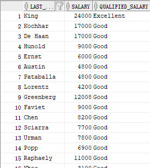 - 需要注意的是CASE表达式是自上到下匹配,如果匹配到则返回结果并且不会再进行后续的匹配了