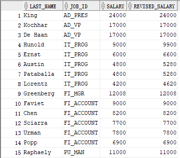 SQL> SELECT last_name,salary,TO_CHAR(salary,'99,999.99') FROM employees WHERE department_id=100;
