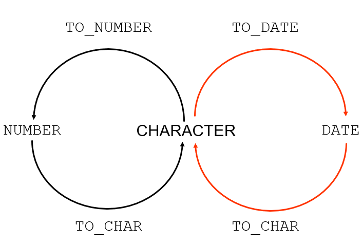 在 Oracle 中,CHARACTER(字符型,如 VARCHAR2)是连接数字(NUMBER)和日期(DATE)的桥梁。