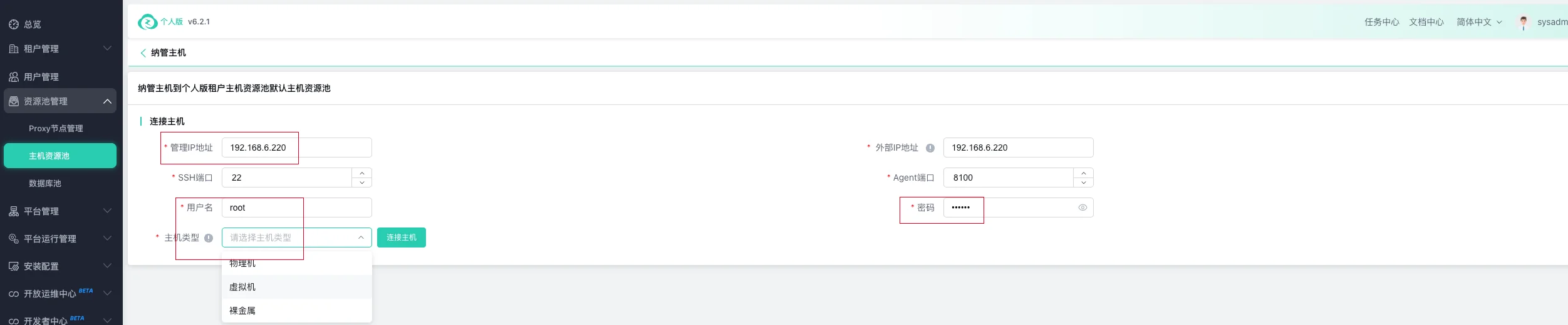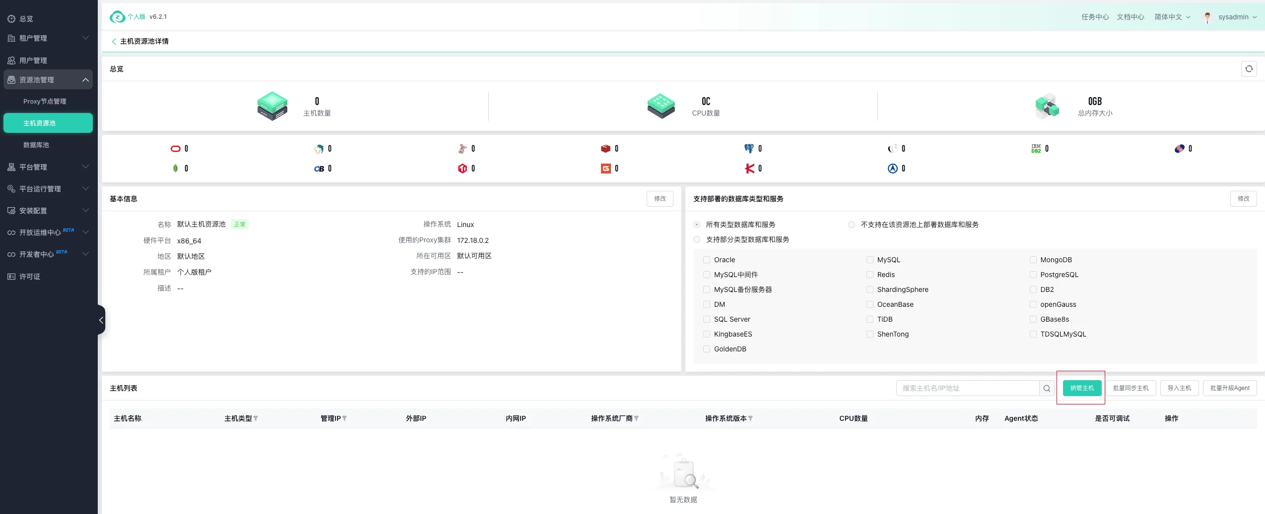 纳管主机