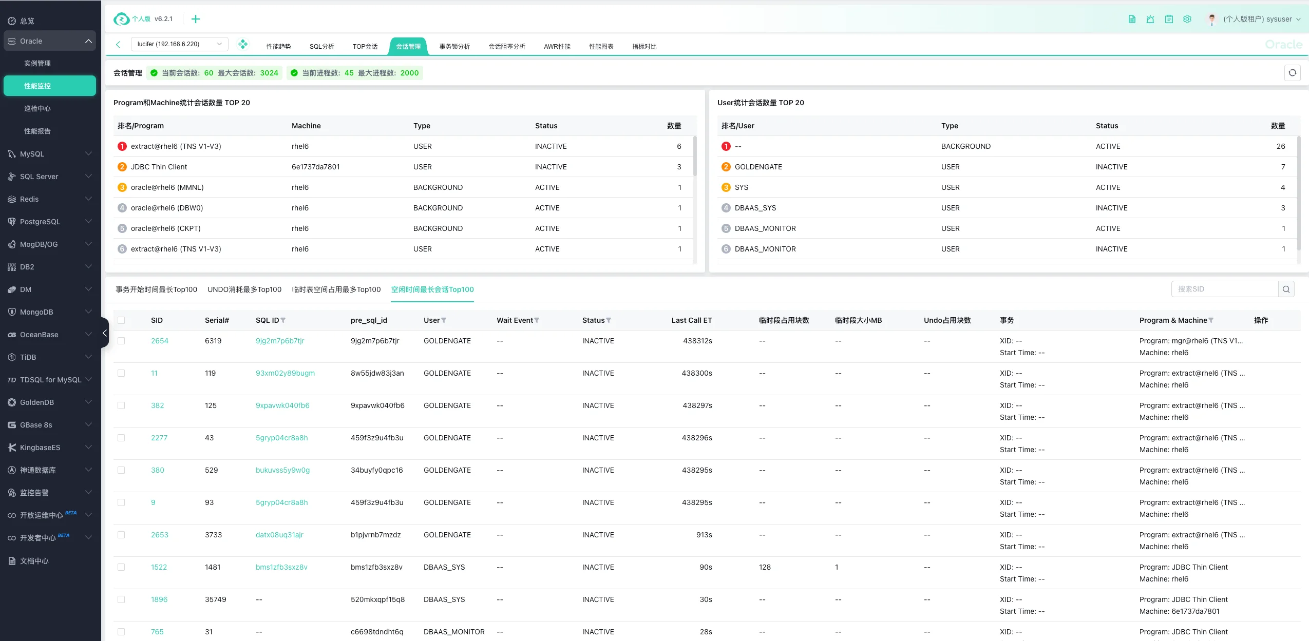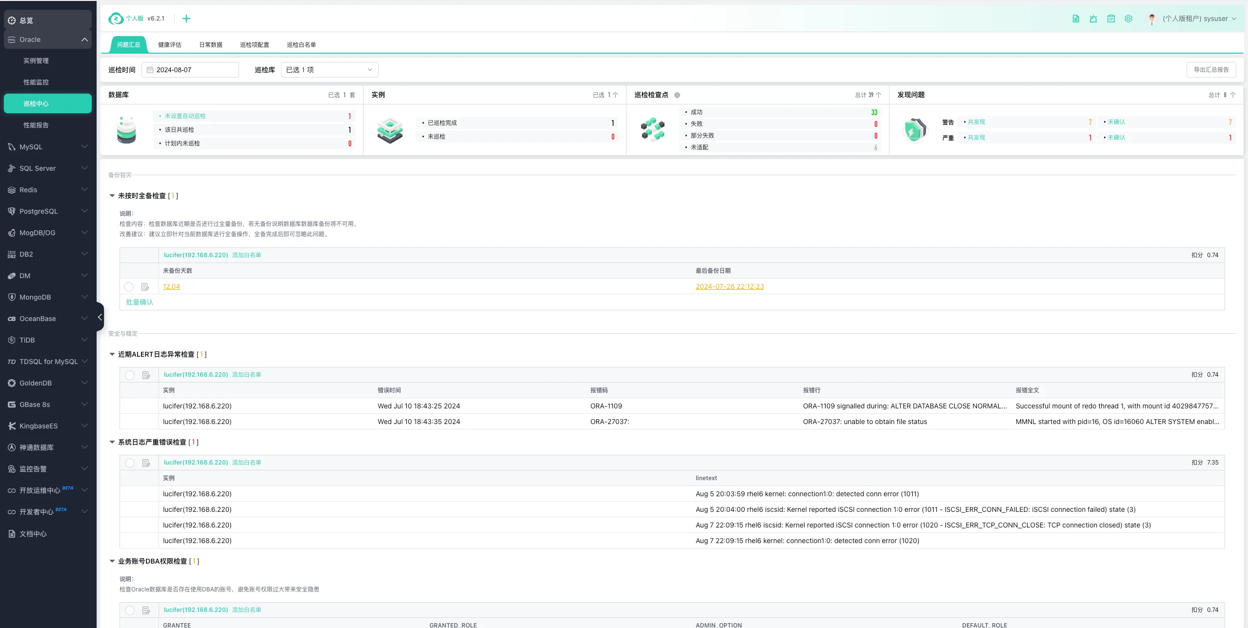 平台支持服务器上多实例,只纳管选择的;也支持 RAC 先纳管部分节点,再纳管新增的节点,或者故障恢复的节点。