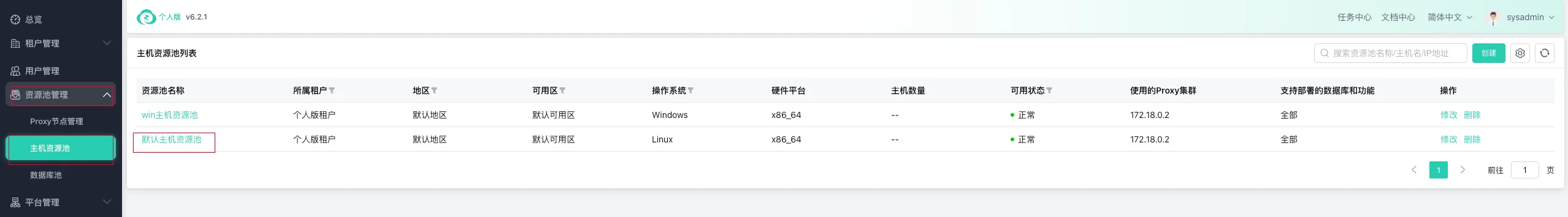 选择【资源池管理】 --> 【主机资源池】 --> 【默认主机资源池】: