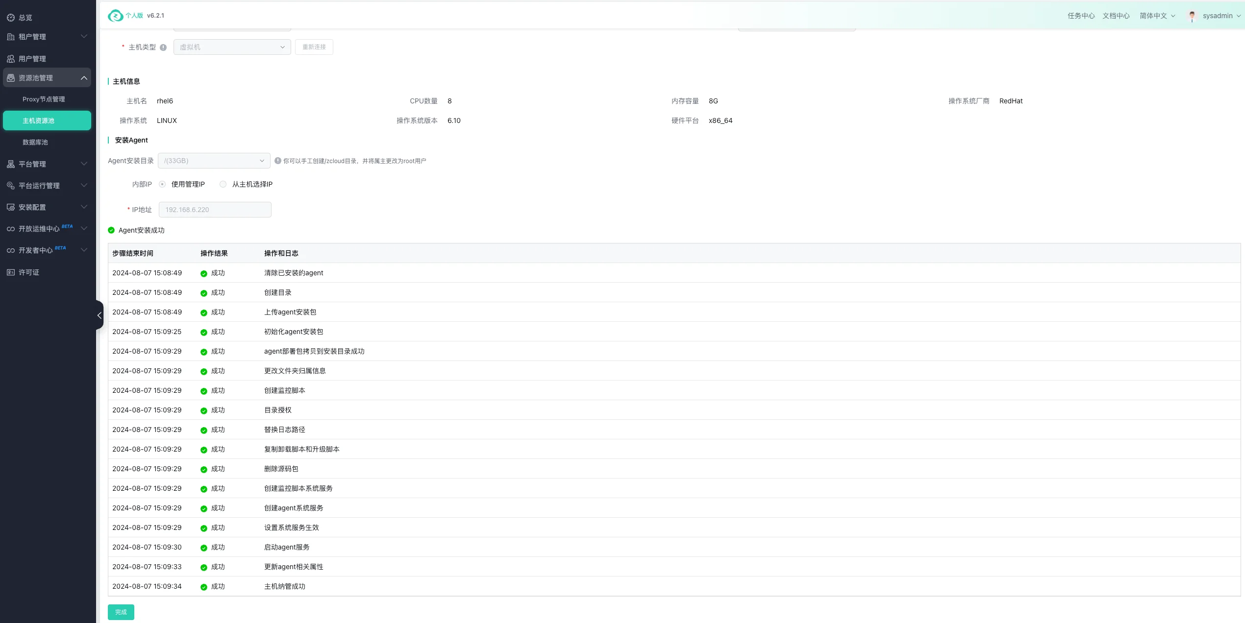 纳管完成: