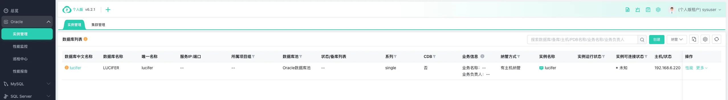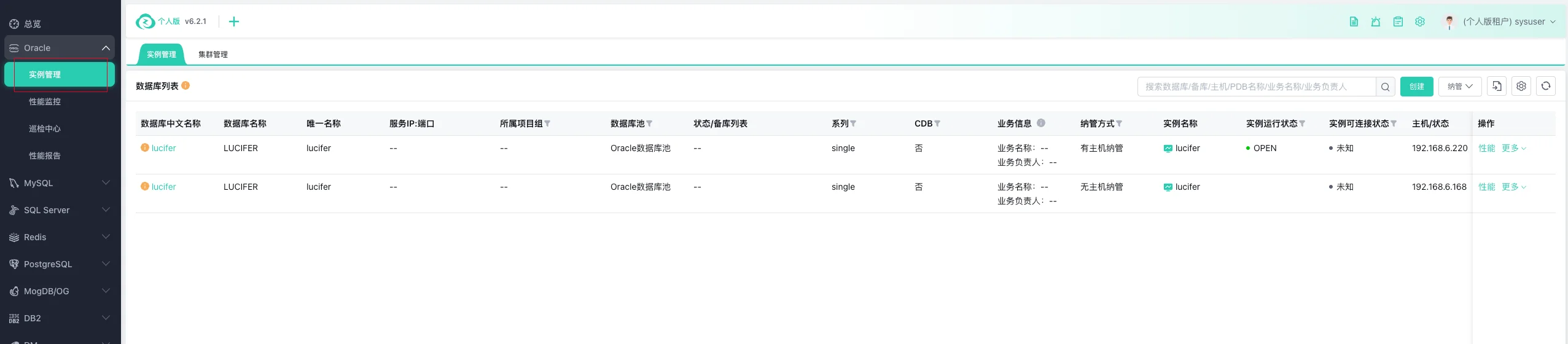点击实例管理可以查看当前已纳管的数据库: