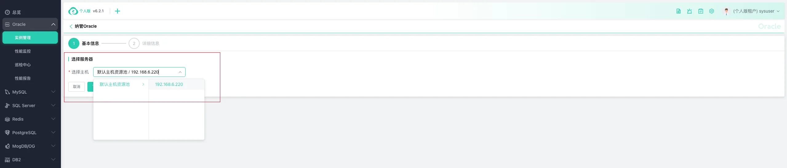 纳管 Oracle 数据库