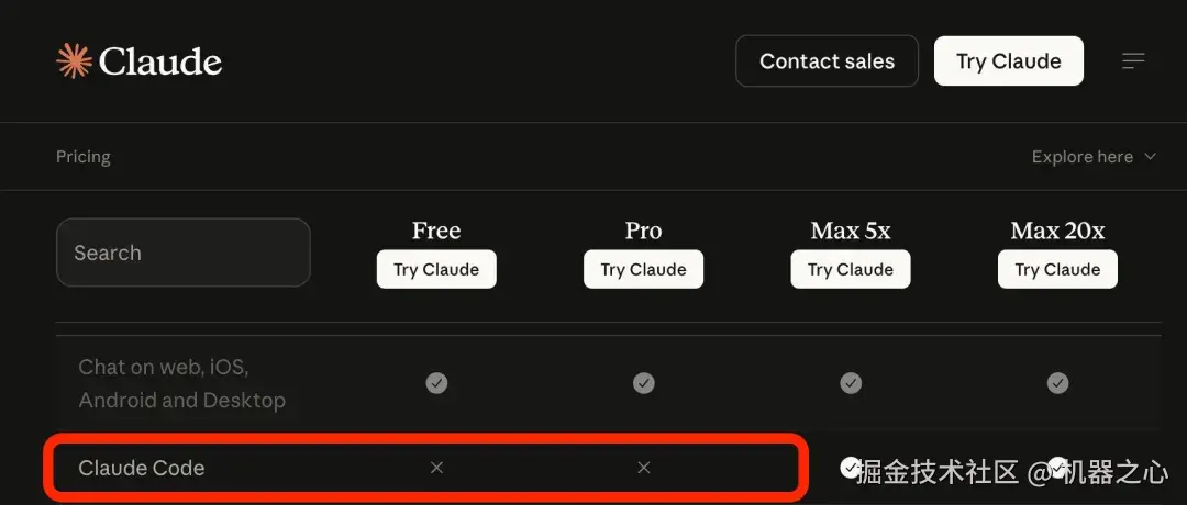 知名科技博主 George Pu 发文称,Anthropic 悄悄修改了价格页面,将其核心代码助手 Claude Code 从 20 美元的 Pro 套餐中剔除,变为 100 美元起步的 Max 套餐专属权益。