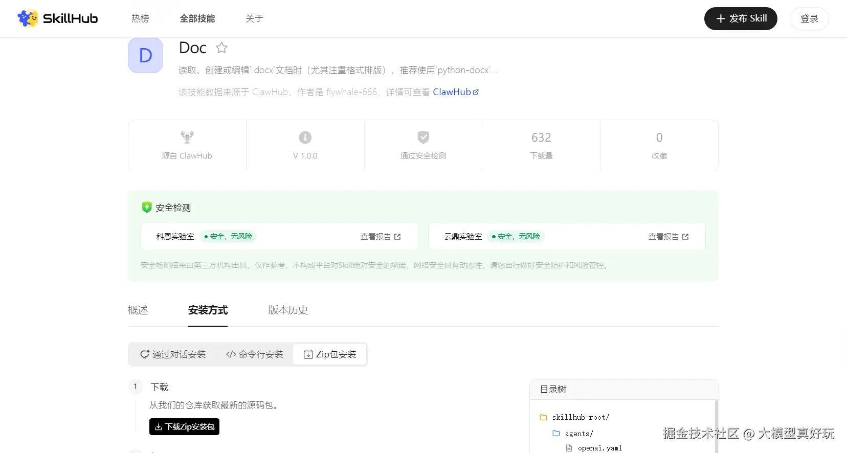 doc,然后通过 ZIP 方式下载对应的 Skill: