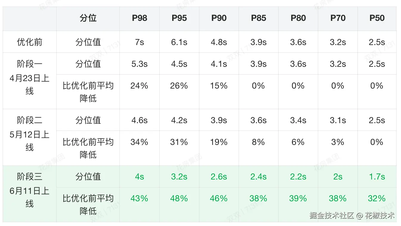 这次优化的重点,不是一开始就追求所有分位值同时最优,而是优先打掉最影响用户体验的高位延迟,再逐步把整体盘面往下拉。