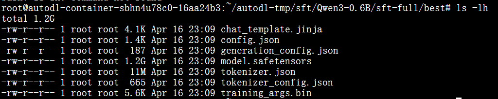 这里是做的测试,然后可以加载我们之前训好的best_model:/root/autodl-tmp/sft/Qwen3-0.6B/sft-full/best