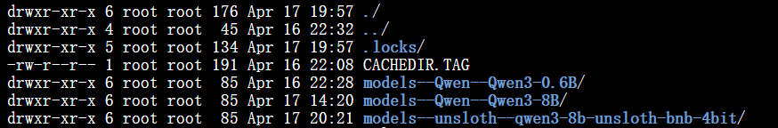 这边虽然model_name是Qwen3-8B,但是还是unsloth还是会自己下,可能是量化。