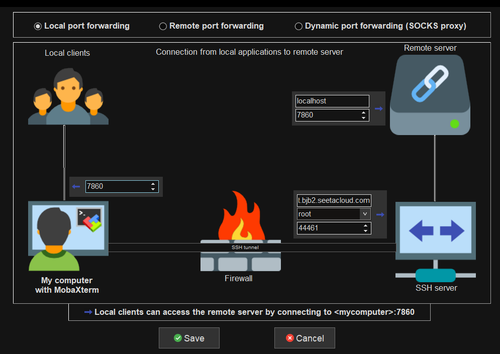 下载一个MobaXterm,进入tunnelling,添加新的SSH tunnel。
