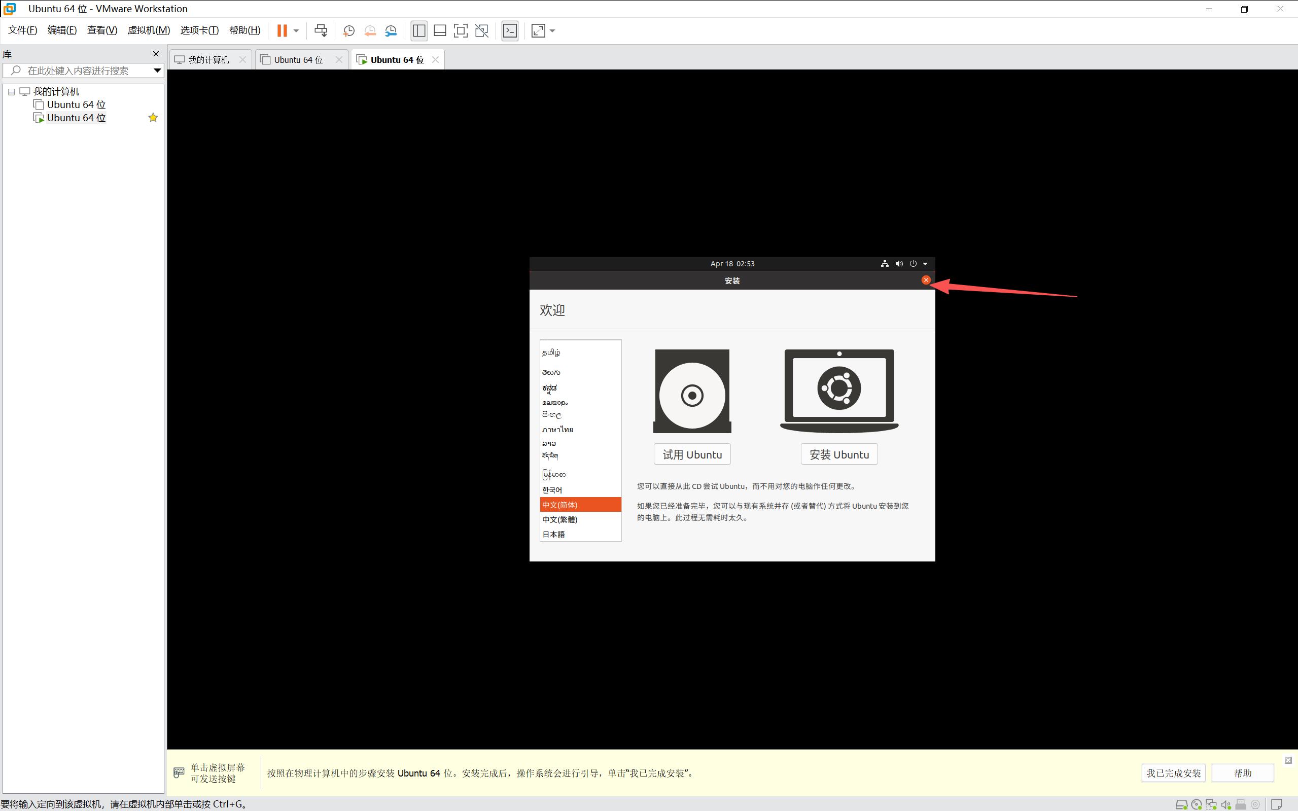 因为现在处于 Ubuntu 的 "试用模式" (Live Session)。