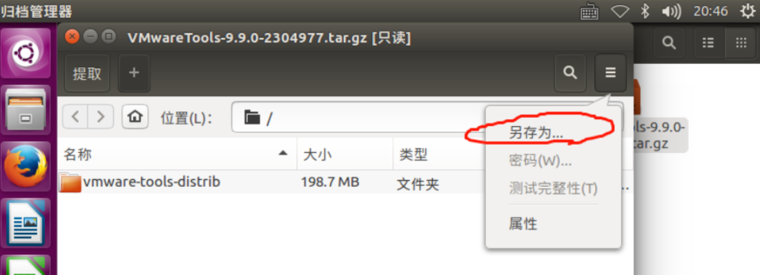 ③ 这里我们鼠标右键选择使用归档管理器打开,然后另存到桌面(为了方便使用终端找到该压缩文件)