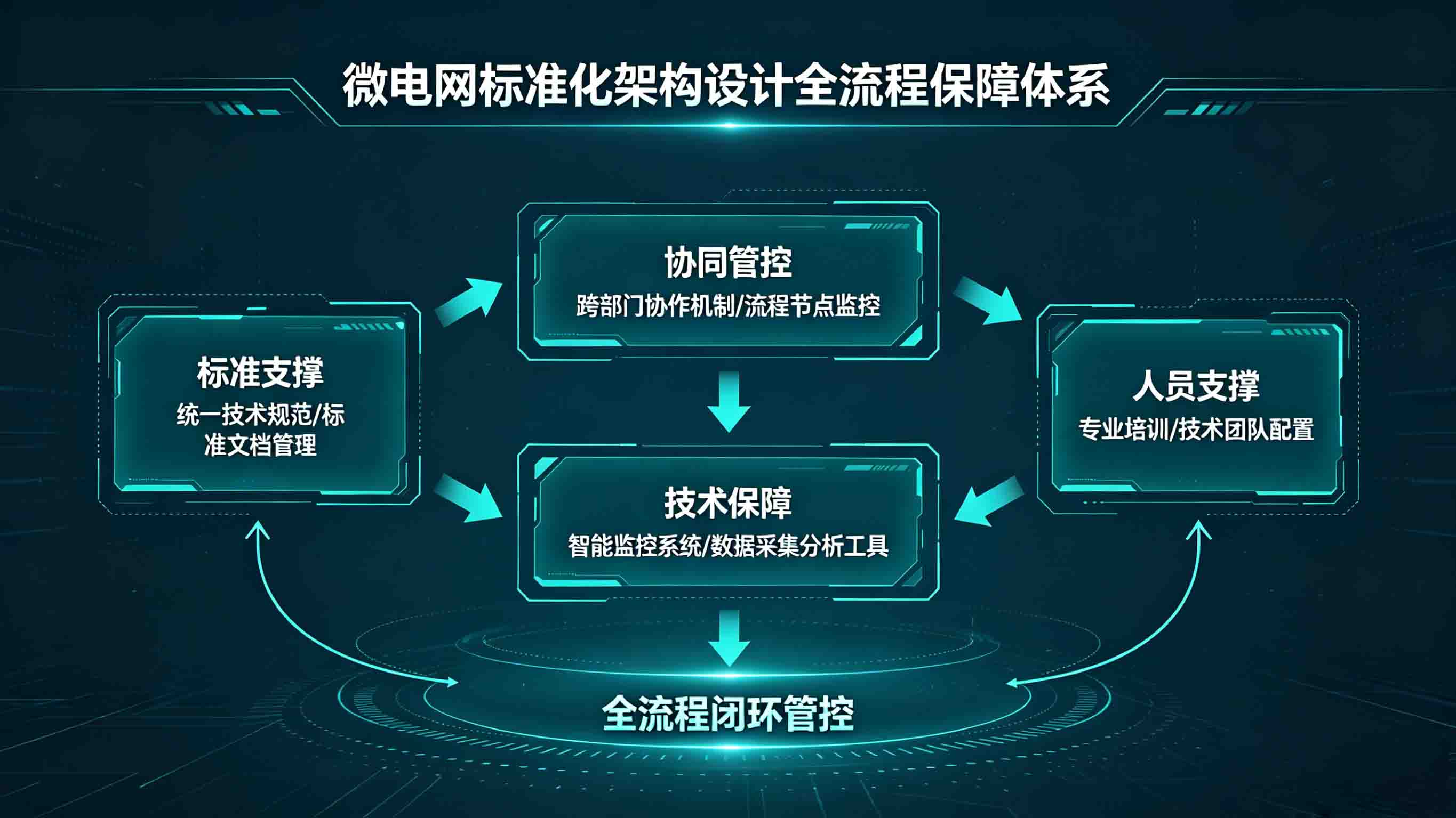 确保微电网标准化架构设计流程的完整性,仅靠各环节的单独管控远远不够,还需构建"标准支撑、协同管控、技术保障、人员支撑"的全方位保障体系,实现全流程闭环管控。