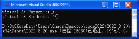 error C2555: "Student::f": 重写虚函数返回类型有差异,且不是来自"Person::f"的协 message : 参见"Person::f"的声明