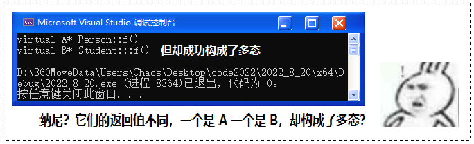💡 因为虚函数的重写要求有一个例外 ------ 协变(Covariant)。