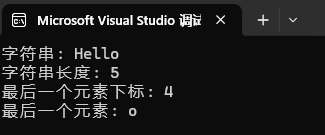printf("最后一个元素: %c\n", arr[last_index]); // o