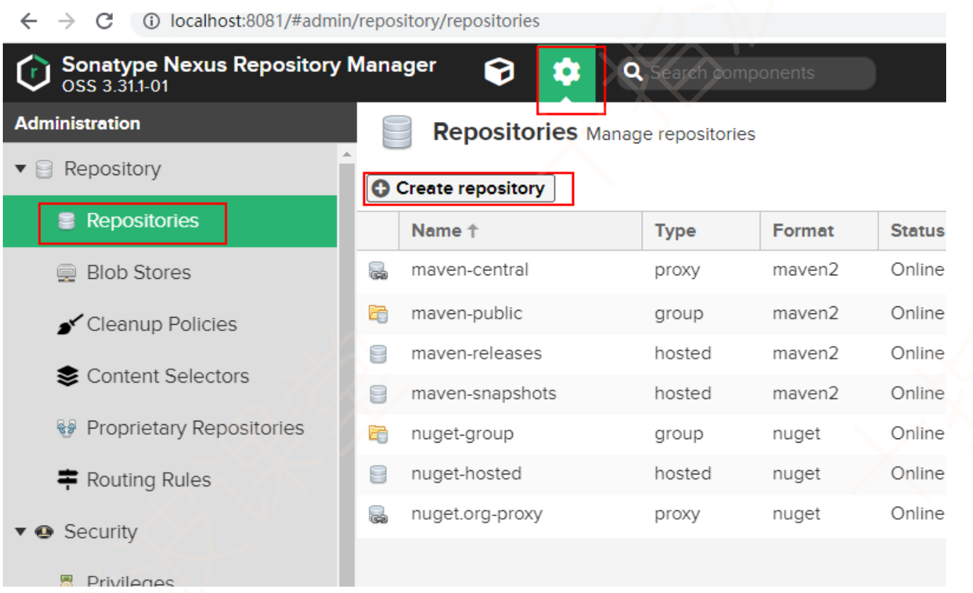 将创建好的仓库放在仓库组中,以暴露给外界;