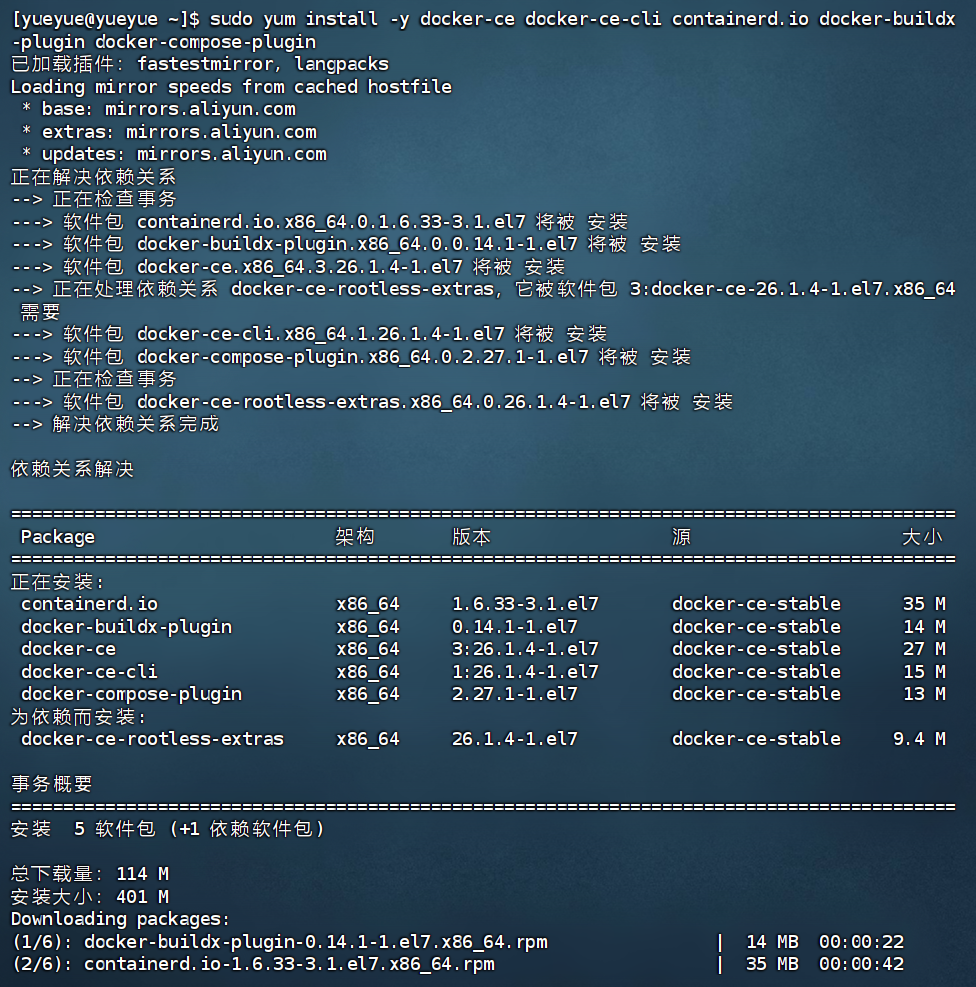sudo yum install -y docker-ce docker-ce-cli containerd.io docker-buildx-plugin docker-compose-plugin