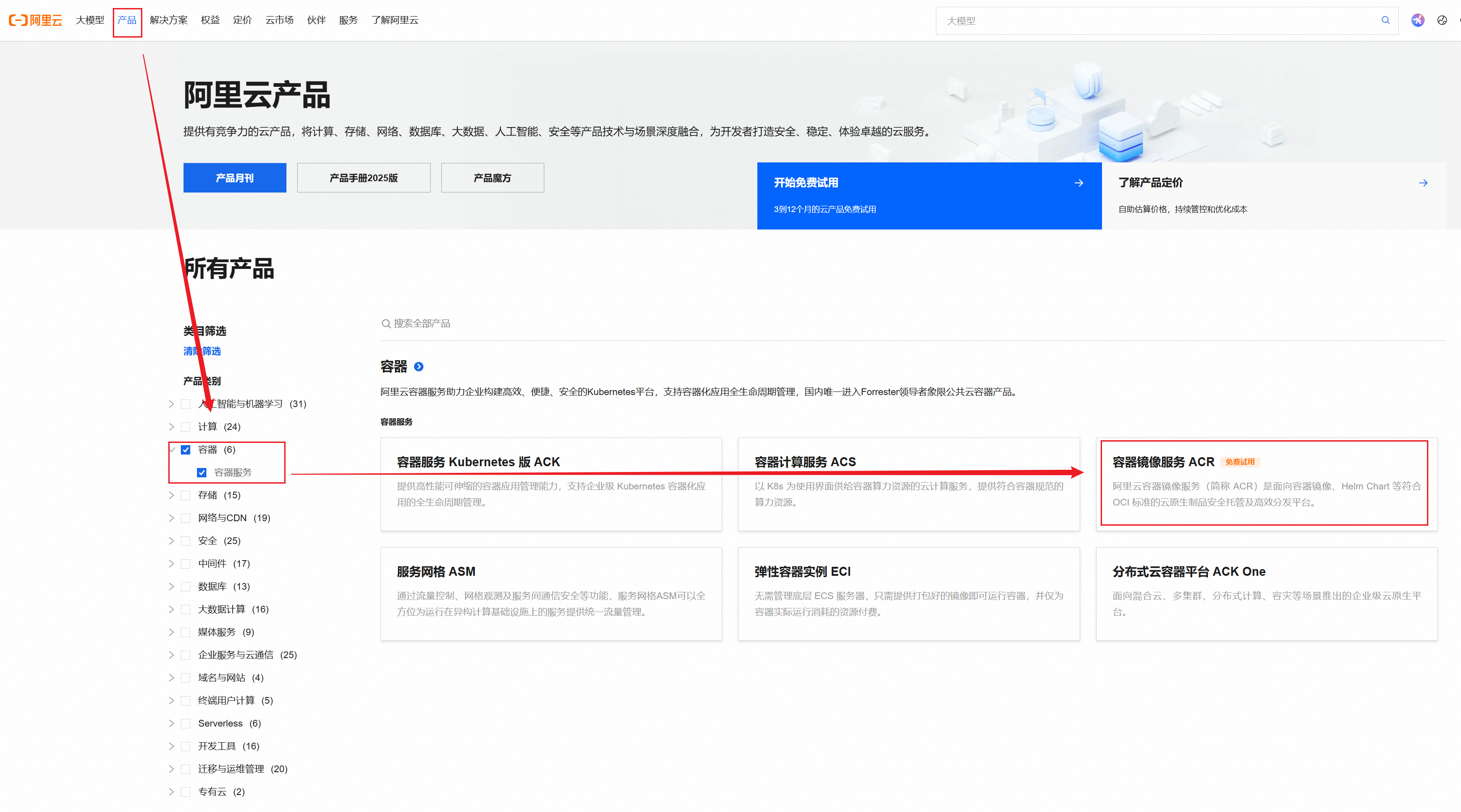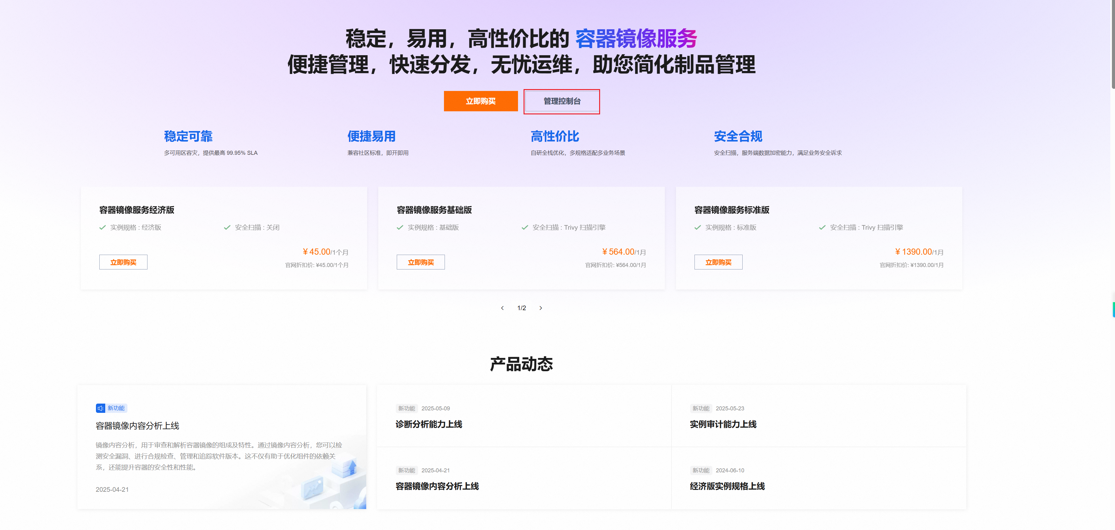 - 开通镜像服务: 首页---产品---容器镜像服务ACR---管理控制台---
