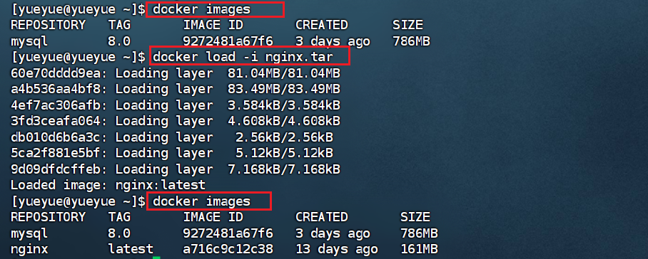 保存镜像包: docker save -o 镜像包名 镜像名:版本号