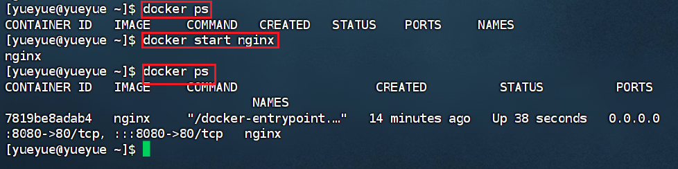 - 执行docker ps命令,如果不报错,说明安装启动成功