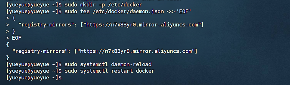 sudo tee /etc/docker/daemon.json <<-'EOF'