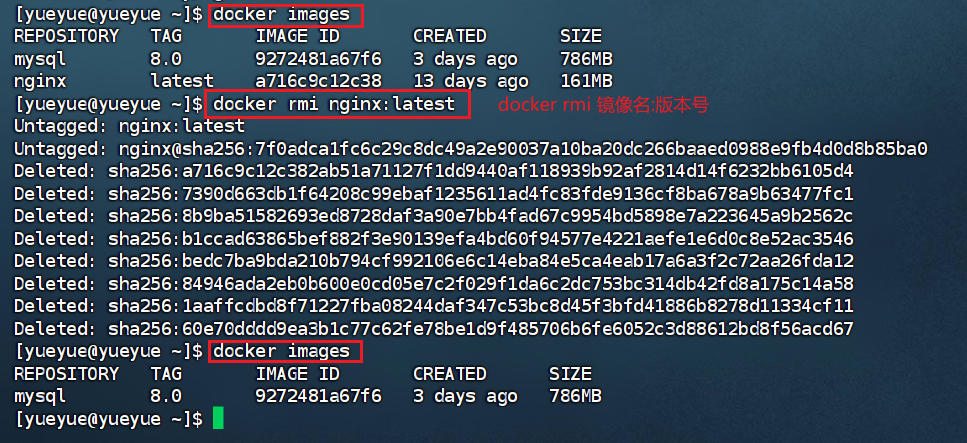 [repository]:[tag],repository 就是镜像名,tag是镜像的版本,正常应该mysql:5.7; - 在没有指定tag时,默认是